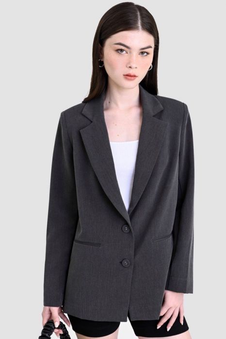 - Áo blazer oversized, hai túi mổ nút cài nhựa cách điệu thời trang.